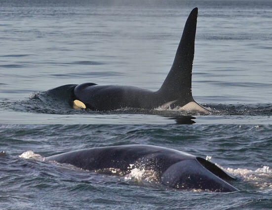 J35 "Tahlequah" and her son, J57 “Phoenix”. Photo Credit: Katie Jones, Center for Whale Research